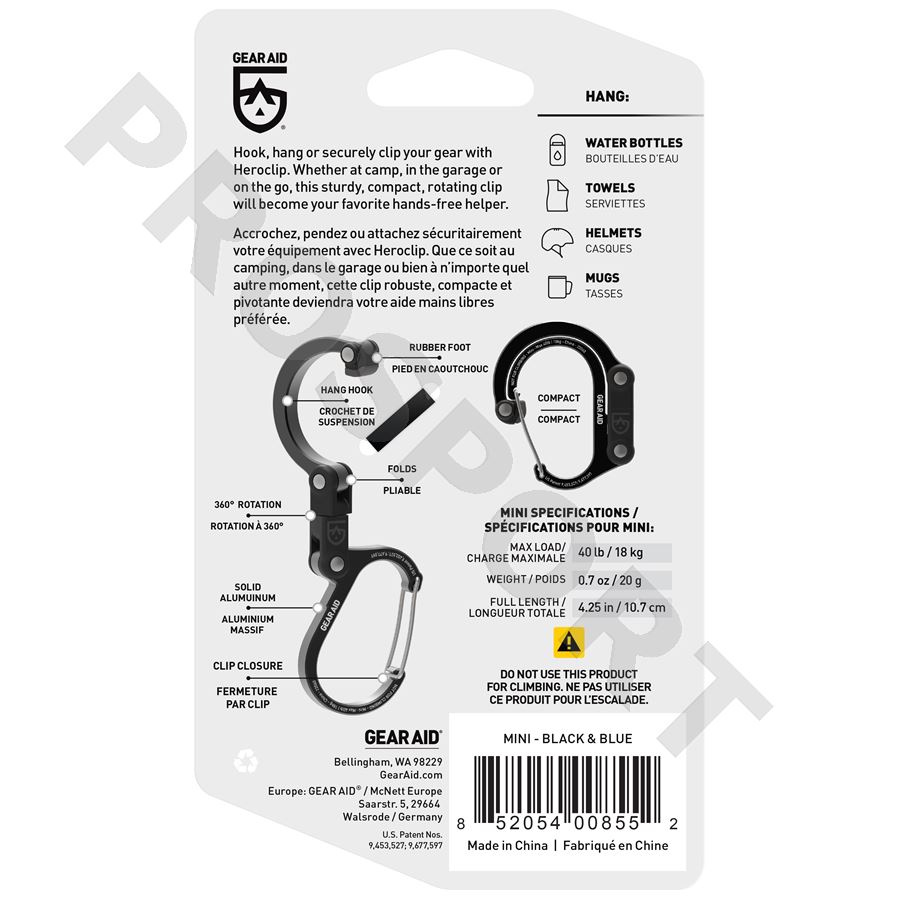 Malý, ale robustný záves na výbavu Heroclip Mini vám umožní zavesiť drobné predmety, ako sú svetlá, tašky, toaletné potreby, uteráky alebo malé reproduktory v stane alebo na konáre stromov. Tento všestranný záves na vybavenie bezpečne drží, umožňuje otáčanie zavesených predmetov o 360° a kompaktne sa skladá tak, ako to iné karabíny, klipy a háčiky nedokážu. Klip má širšiu západku v porovnaní so štandardnými karabínami a klipmi a háčik na zavesenie má priľnavý gumový hrot.