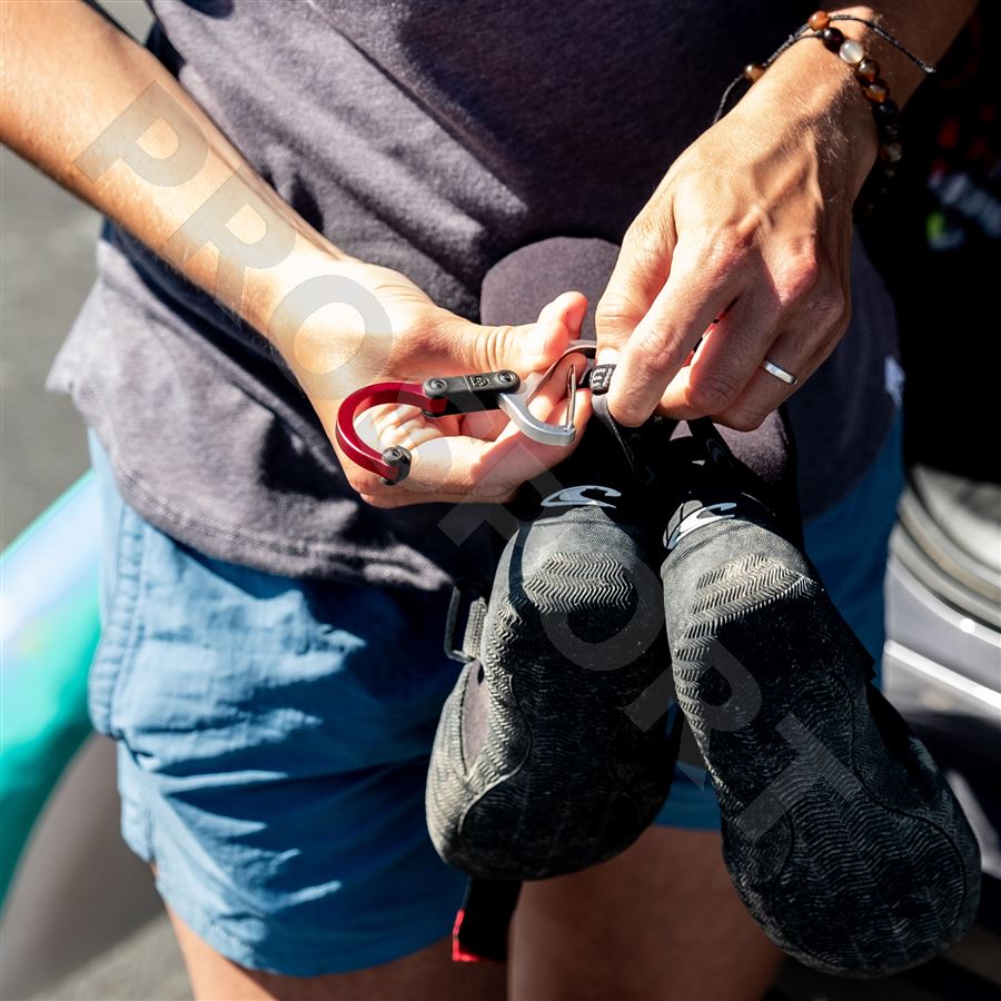 Keď sa hák nepoužíva, bezpečne a kompaktne sa zloží do veľkosti karabíny