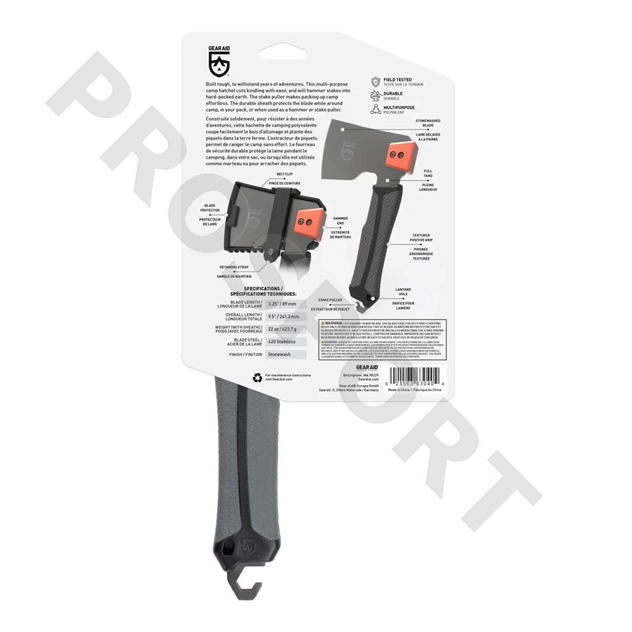 BALTA od spoločnosti GearAid je viacúčelová kempingová sekera, ktorá ľahko štiepi drevené štiepky na rozkladanie ohňa, zatĺka koly do udusanej zeme a slúži pre zatĺkanie stanových kolíkov aj ako ich vyťahovač pri stavbe a balenie tábora. Jej jednodielna konštrukcia z nehrdzavejúcej ocele je veľmi pevná a odolná a zostane funkčná po mnoho rokov. Vyťahovač kolíkov má tvar háku pre jednoduché použitie. Puzdro má dôležitú bezpečnostnú funkciu, pri práci by sa malo byť nasadené. Slúži nielen ako chránič čepele, ale výrazne chráni používateľa pri práci, preprave a skladovaní. Textúrovaná rukoväť zaisťuje pevný úchop za vlhkého počasia aj pri práci v rukaviciach. Kompaktná veľkosť je ideálna na kempovanie a skladovanie. Sekera má klip na zavesenie na opasok alebo popruh.